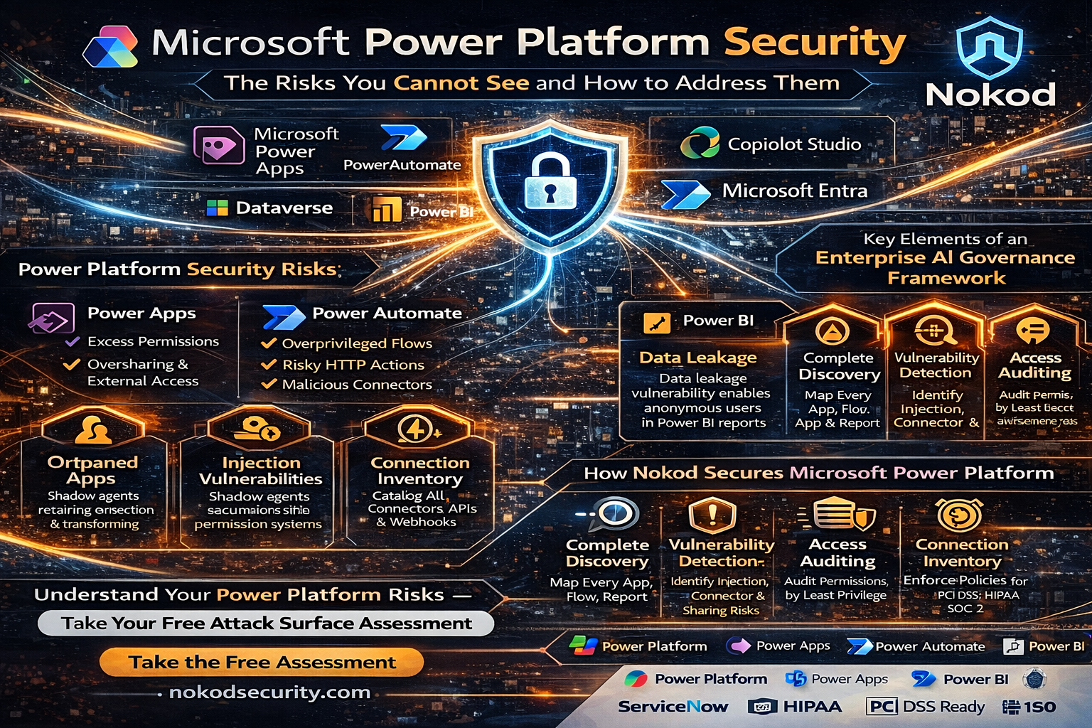 Microsoft Power Platform has become the backbone of citizen development across enterprises worldwide. Power Apps, Power Automate, Power BI, and Copilot Studio collectively enable millions of business users to build applications, automate workflows, analyze data, and deploy AI agents – all without writing code. But the same capabilities that make Power Platform indispensable also make it one of the most significant unmanaged security risks in the modern enterprise. This article examines the security challenges specific to Microsoft Power Platform and explains how Nokod Security addresses them.